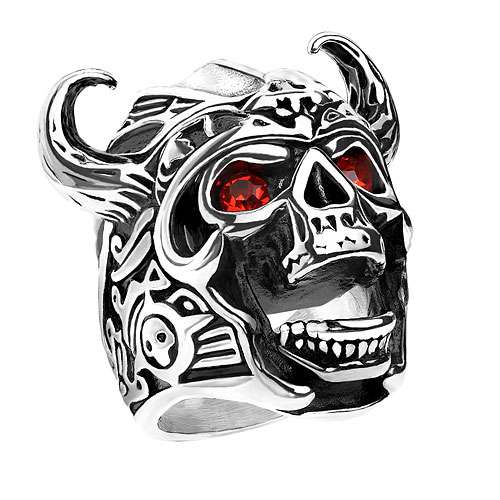 Wikinger Schädel Ring Totenkopf Biker Rocker Ring mit roten Kristall Augen