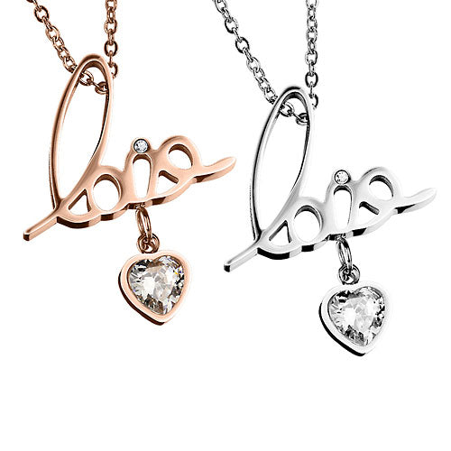 Wunderschöne Halskette mit Love Anhänger und Kristall Herz Rosegold vergoldet