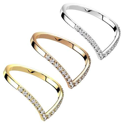 Wunderschöner Damen Shevron Ring Verlobungsring mit kleinen Kristallen