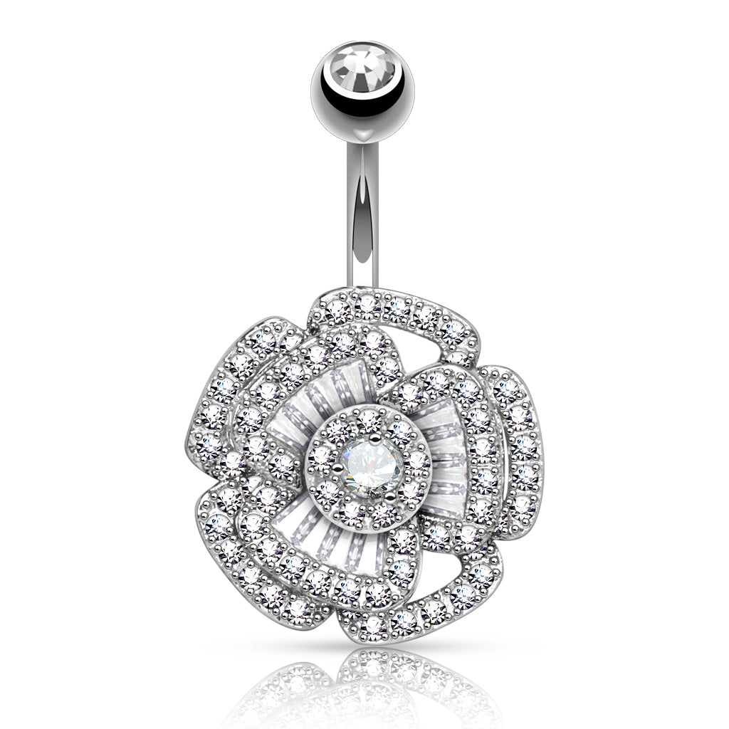 Wunderschönes Bauchnabelpiercing Camellia Blume mit vielen Kristallen