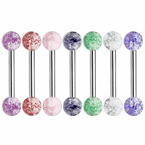 Zungenpiercing Barbell Hantel Ultra UV Glitter Kugeln