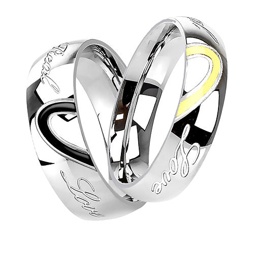 Zweifarbiger eleganter Trauring Verlobungsring mit halben Herz Love